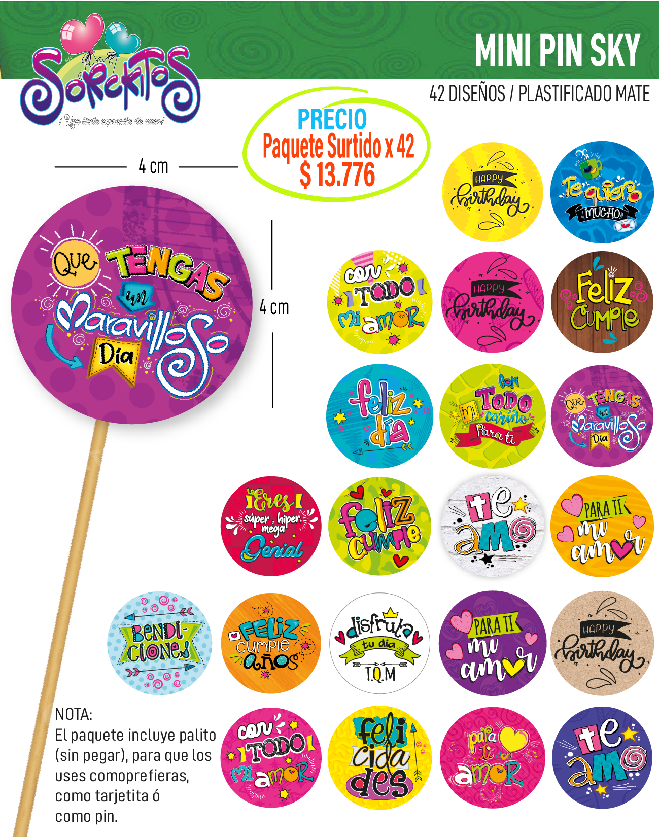 ¡Agrega un toque de diversión y personalidad a tus regalos con nuestro PIN SKY MINI! Este pin mini es perfecto para decorar cualquier obsequio y viene con palitos sin pegar para mayor facilidad. Úsalo como tarjeta o como pin y sorprende a tus seres queridos. ¡Somos mayoristas y este pin es para toda ocasión!